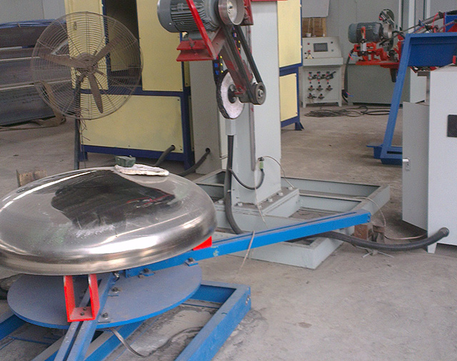 專用于各類封頭內(nèi)、外表面粗磨、精磨、拉絲及鏡面拋光的機床?砂匆笤O(shè)計不同形式的磨頭,利用砂帶、千葉輪、纖維輪、麻輪等對各種不銹鋼產(chǎn)品進(jìn)行磨削拋光。